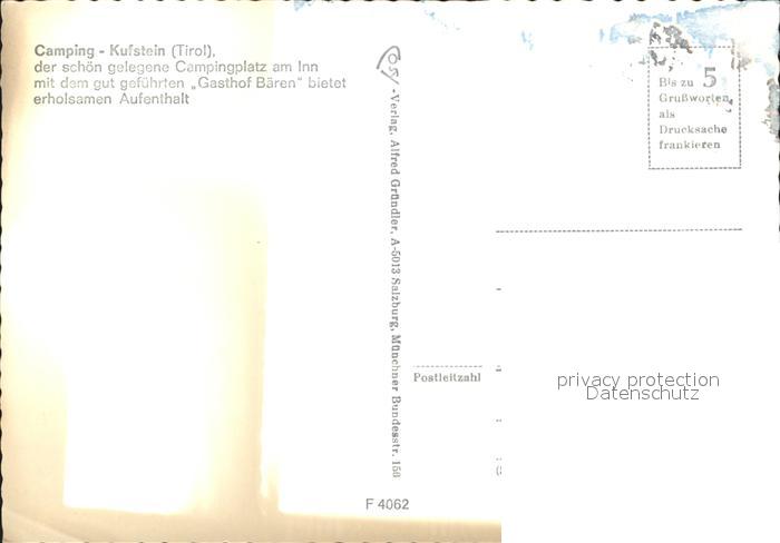 72270655 Kufstein Tirol Campingplatz am Inn Schloss postalisch nicht gelaufen Erhaltung siehe scans KatCode: 11390335070513