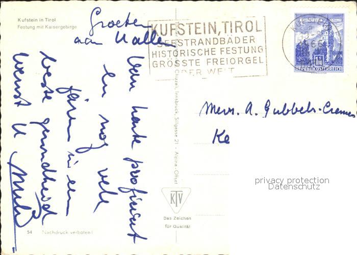 72417692 alte Postkarte Kufstein Tirol Festung mit Kaisergebirge postalisch gelaufen Erhaltung siehe scans KatCode: 11390335070513