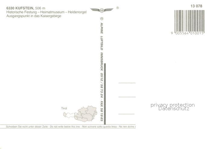 73596368 Kufstein Tirol Fliegeraufnahme Festung Heimatmuseu Heldenorgel Kaisergebirge postalisch nicht gelaufen Erhaltung siehe scans [LiesaD40] KatCode: 11390335070513