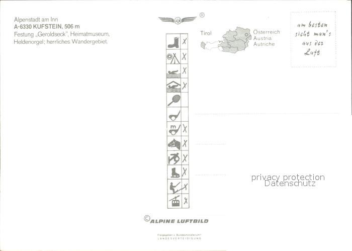 72571716 Kufstein Tirol Fliegeraufnahme Innpartie mit Festung Geroldseck postalisch nicht gelaufen Erhaltung siehe scans [LiesaD40] KatCode: 11390335070513