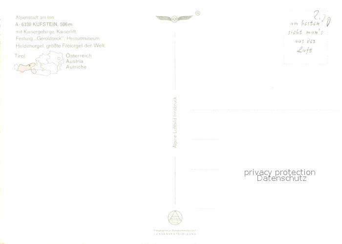 72886682 Kufstein Tirol Fliegeraufnahme mit Wildem Kaiser postalisch nicht gelaufen Erhaltung siehe scans [WerneD78] KatCode: 11390335070513