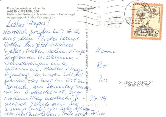 72420440 alte Postkarte Kufstein Tirol Fliegeraufnahme Partie am Inn postalisch gelaufen Erhaltung siehe scans KatCode: 11390335070513