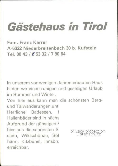 72545390 Kufstein Tirol Gaestehaus Karrer postalisch nicht gelaufen Werbekarte (keine Postkarte) Erhaltung siehe scans [AndreD76 kv012box] KatCode: 11390335070513