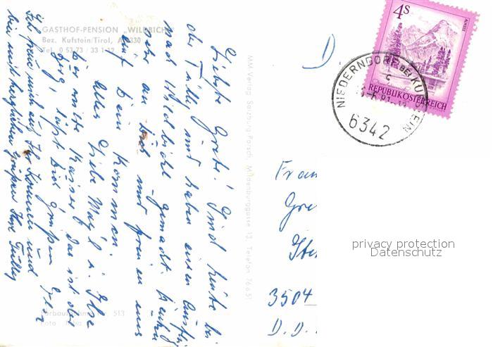 72750615 alte Postkarte Kufstein Tirol Gasthaus Pension Wildbich postalisch gelaufen Erhaltung siehe scans [LiesaD40] KatCode: 11390335070513