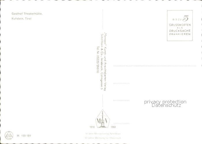 72071403 Kufstein Tirol Gasthof Theaterhuette postalisch nicht gelaufen Erhaltung siehe scans KatCode: 11390335070513
