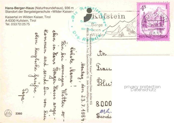 72651896 alte Postkarte Kufstein Tirol Hans Berger Haus Wilder Kaiser Totenkirchl Hintere Karlspitze Kleine Halt postalisch gelaufen Erhaltung siehe scans [WerneD78] KatCode: 11390335070513