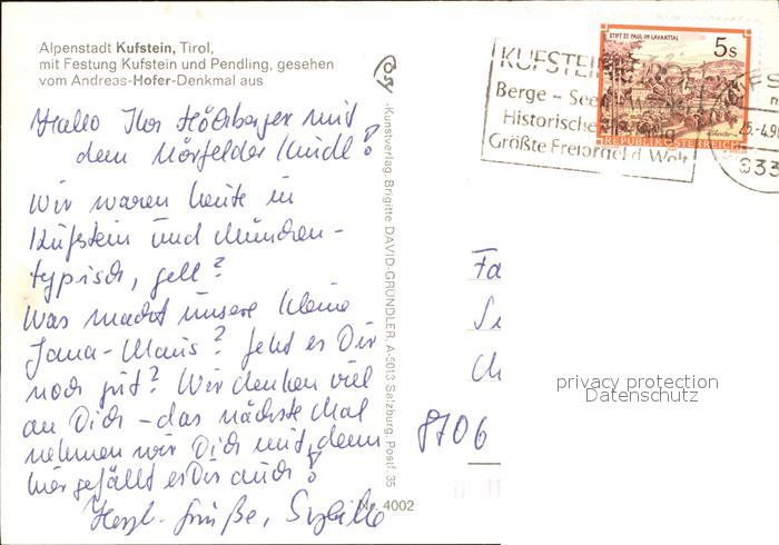 72433457 alte Postkarte Kufstein Tirol Heldenorgel Liszt Denkmal Marienbrunnen Andreas Hofer Denkmal postalisch gelaufen Erhaltung siehe scans KatCode: 11390335070513