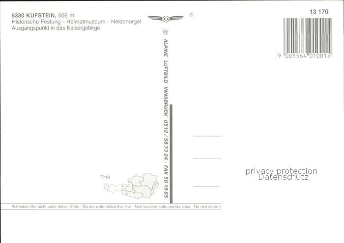 71872155 Kufstein Tirol Historische Festung Heimatmuseum Heldenorgel Fliegeraufnahme postalisch nicht gelaufen Erhaltung siehe scans KatCode: 11390335070513