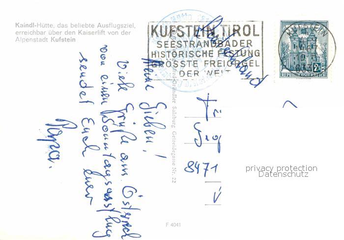 72651887 alte Postkarte Kufstein Tirol Kaindl Huette Wilder Kaiser postalisch gelaufen Erhaltung siehe scans [WerneD78] KatCode: 11390335070513