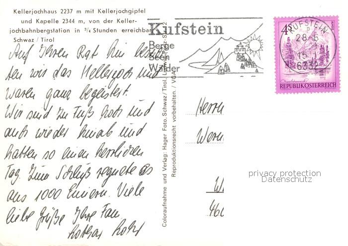 72946959 alte Postkarte Kufstein Tirol Kellerjochhaus Kellerjochgipfel Kapelle postalisch gelaufen Erhaltung siehe scans [KathaD81] KatCode: 11390335070513