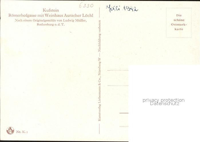 11542369 Kufstein Tirol Künstlerkarte Ludwig Mößler Römerhofgasse Weinhaus Auracher Löchl KatCode 11390335070513