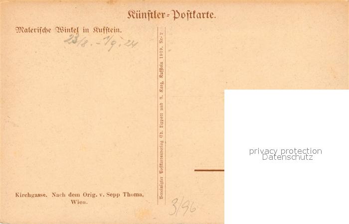 43112659 Kufstein Tirol Malerischer Winkel Kirchgasse nach Original von Sepp Thoma Kuenstlerkarte postalisch nicht gelaufen Erhaltung siehe scans [FriedD77] KatCode: 11390335070513