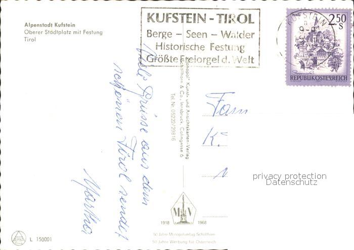 72353886 alte Postkarte Kufstein Tirol Oberer Stadtplatz mit Festung postalisch gelaufen Erhaltung siehe scans KatCode: 11390335070513