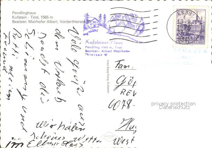 72567778 alte Postkarte Kufstein Tirol Pendingerhaus postalisch gelaufen Erhaltung siehe scans [KathaD79] KatCode: 11390335070513