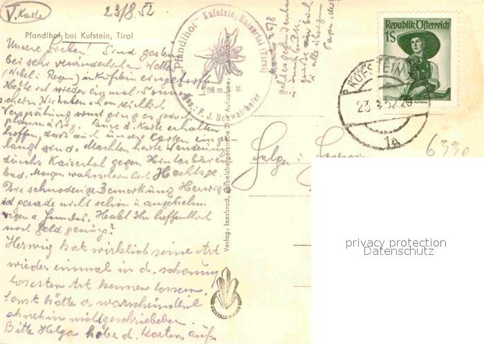 72694795 alte Postkarte Kufstein Tirol Pfandlhof postalisch gelaufen Erhaltung siehe scans [LiesaD40] KatCode: 11390335070513