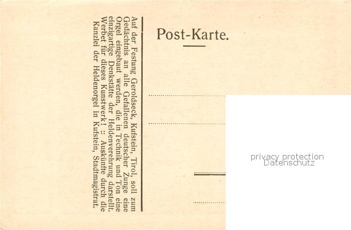 43018612 Kufstein Tirol Riesenorgel postalisch nicht gelaufen Erhaltung siehe scans [KathaD81] KatCode: 11390335070513