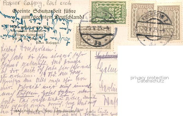 43051721 alte Postkarte Kufstein Tirol Schutzvereinstagung Pfingsten 1925 postalisch gelaufen Erhaltung siehe scans [PaolaD17] KatCode: 11390335070513