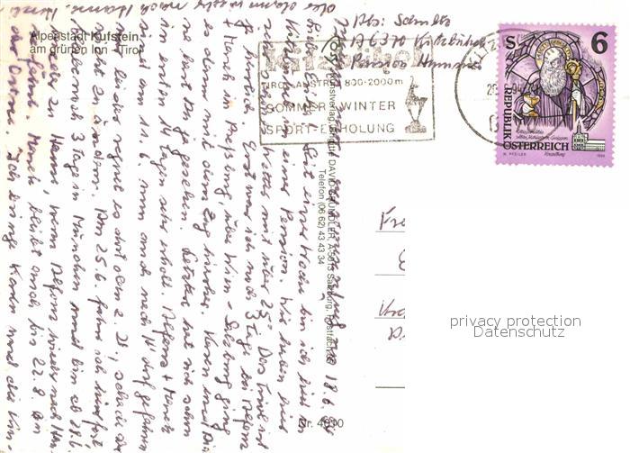 72644774 alte Postkarte Kufstein Tirol Stadtbild mit Festung Alpenblick Burghof Antoniuskapelle Heldenorgel postalisch gelaufen Erhaltung siehe scans [FriedD77] KatCode: 11390335070513