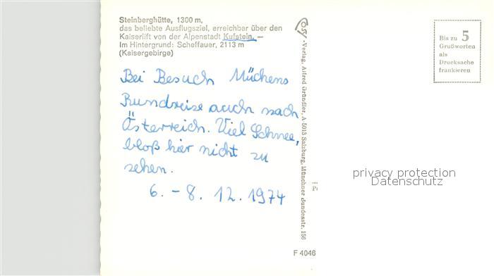 73326061 Kufstein Tirol Steinberghuette Ausflugsziel Scheffauer Kaisergebirge postalisch nicht gelaufen Erhaltung siehe scans [FriedD77] KatCode: 11390335070513