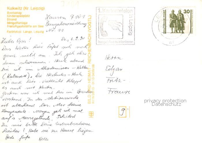 73866017 alte Postkarte Kulkwitz Markranstaedt Bootsliegeplatz Kinderspielplatz Strand Minigolf Freiluftgaststaette am See postalisch gelaufen Erhaltung siehe scans [WerneD78] KatCode: 11110014379460