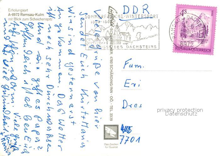 73590328 alte Postkarte Kulm Ramsau Ortsansicht mit Kirche mit Blick zum Scheichenspitz Dachsteingebirge postalisch gelaufen Erhaltung siehe scans [FriedD77] KatCode: 11110009172129