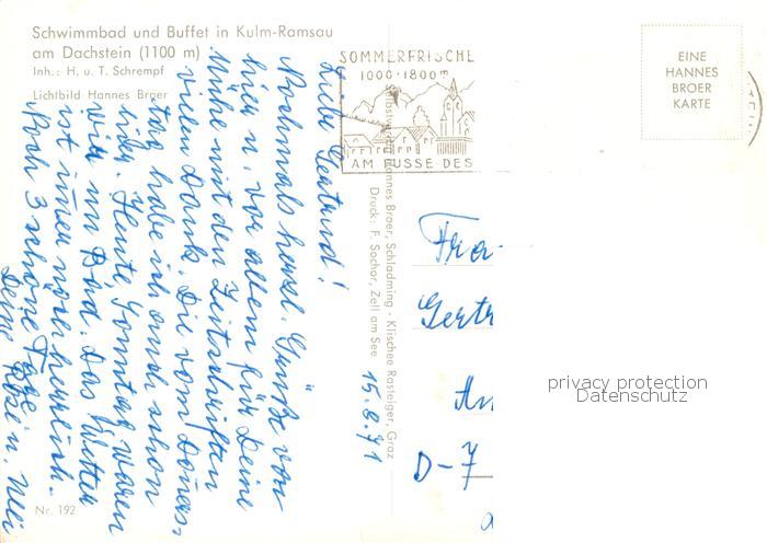 73837425 alte Postkarte Kulm Ramsau Schwimmbad und Buffet am Dachstein postalisch gelaufen Erhaltung siehe scans [FriedD77] KatCode: 11110009172129