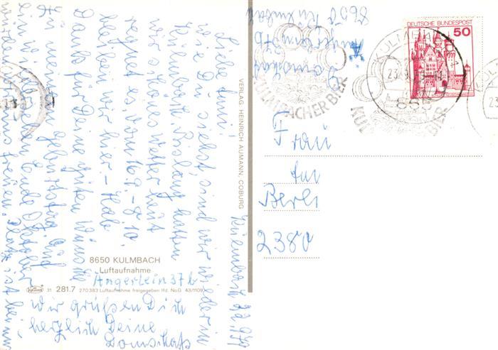 73917097 Kulmbach Bayern Fliegeraufnahme postalisch gelaufen Erhaltung siehe scans [WerneD78] alte Postkarte Wern Katcode 11110009477128