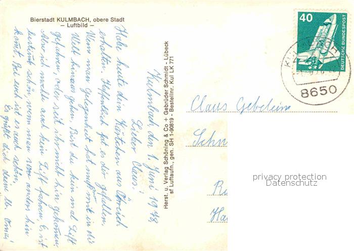 72846866 alte Postkarte Kulmbach Bayern Fliegeraufnahme Burg postalisch gelaufen Erhaltung siehe scans [KathaD81] KatCode: 11110009477128
