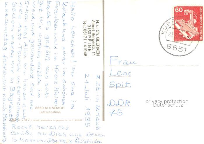 73719045 Kulmbach Bayern Fliegeraufnahme Gesamtansicht postalisch gelaufen Erhaltung siehe scans [LiesaD40] alte Postkarte Lies Katcode 11110009477128