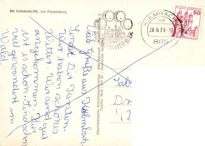 73940885 Kulmbach Bayern Fliegeraufnahme mit Plassenburg postalisch gelaufen Erhaltung siehe scans [FriedD77] alte Postkarte Frie Katcode 11110009477128