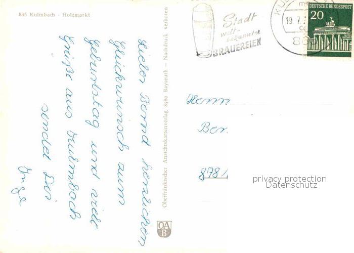 72842490 alte Postkarte Kulmbach Bayern Holzmarkt postalisch gelaufen Erhaltung siehe scans [PaolaD17] KatCode: 11110009477128