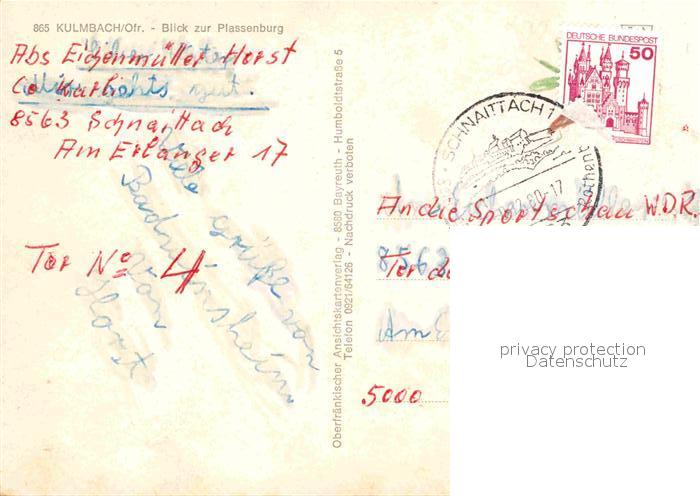 72740700 alte Postkarte Kulmbach Bayern mit Plassenburg postalisch gelaufen Erhaltung siehe scans [WerneD78] KatCode: 11110009477128