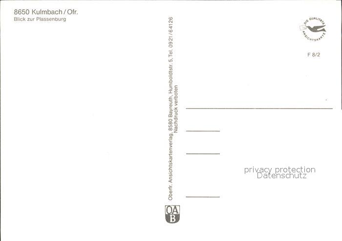 72447426 Kulmbach Bayern mit Plassenburg postalisch nicht gelaufen Erhaltung siehe scans KatCode: 11110009477128
