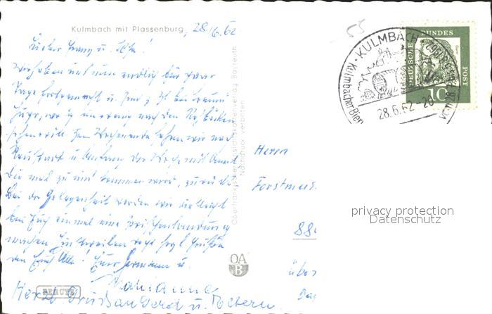 72194674 alte Postkarte Kulmbach Bayern mit Plassenburg postalisch gelaufen Erhaltung siehe scans KatCode: 11110009477128