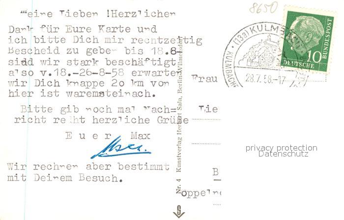 43361824 Kulmbach Bayern Panorama Teilansichten postalisch gelaufen Erhaltung siehe scans [WerneD78] alte Postkarte Wern Katcode 11110009477128