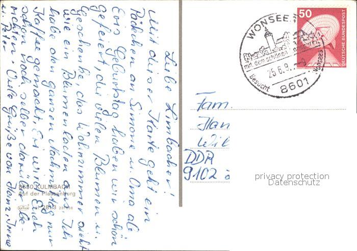 72567615 alte Postkarte Kulmbach Bayern Plassenburg postalisch gelaufen Erhaltung siehe scans [LiesaD40] KatCode: 11110009477128