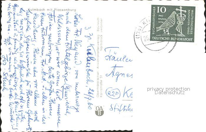 72062912 alte Postkarte Kulmbach Bayern Plassenburg postalisch gelaufen Erhaltung siehe scans KatCode: 11110009477128