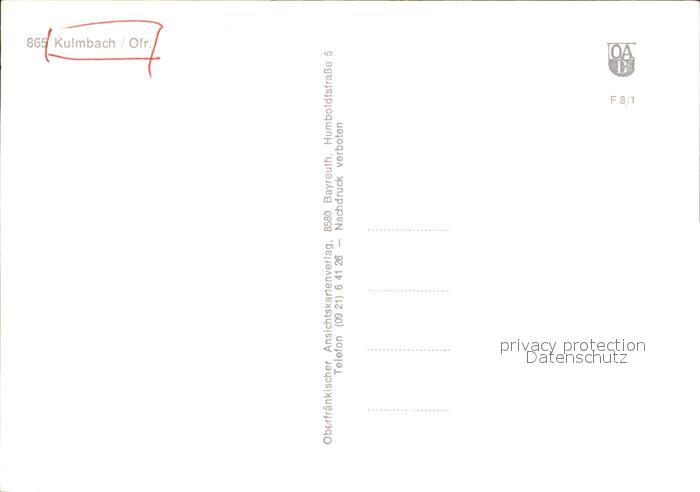 72512724 Kulmbach Bayern Stadtblick mit Schloss postalisch nicht gelaufen Erhaltung siehe scans KatCode: 11110009477128