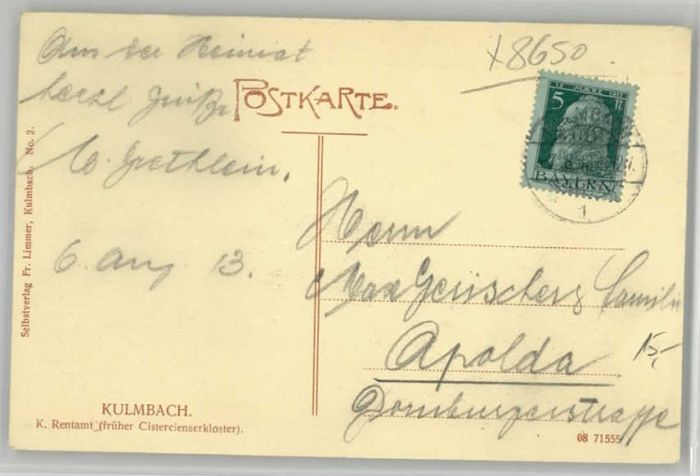 40238123 Kulmbach Bayern [Stempelabschlag] postalisch gelaufen Alte Ansichtskarte Postkarte alte Postkarte Katcode 11110009477128