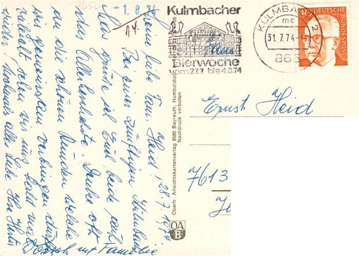73940585 Kulmbach Bayern Teilansichten Bierstadt Spruch Hopfen und Malz Gott erhalt’s postalisch gelaufen Erhaltung siehe scans [FriedD77] alte Postkarte Frie Katcode 11110009477128