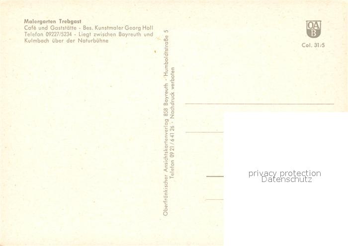73056223 Kulmbach Malergarten Trebgast Cafe Gaststaette postalisch nicht gelaufen Erhaltung siehe scans [WerneD78] KatCode: 11110009477128