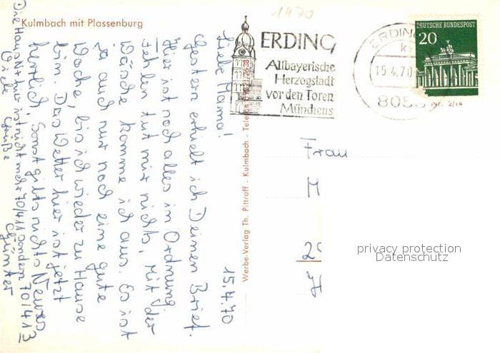 72889482 alte Postkarte Kulmbach mit Plassenburg postalisch gelaufen Erhaltung siehe scans [LiesaD40] KatCode: 11110009477128