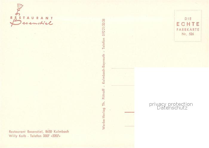 73543001 Kulmbach Restaurant Besenstiel Kamin postalisch nicht gelaufen Erhaltung siehe scans [FriedD77] KatCode: 11110009477128