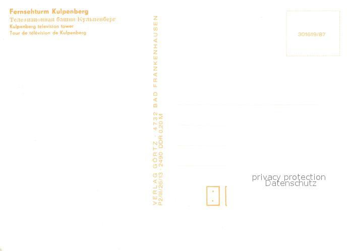 72998272 Kulpenberg Fernsehturm postalisch nicht gelaufen Erhaltung siehe scans [WerneD78] KatCode: 11110016065003