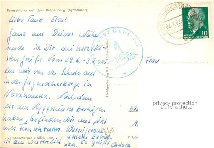 73162239 alte Postkarte Kulpenberg Fersehturm postalisch gelaufen Erhaltung siehe scans [FriedD77] KatCode: 11110016065003