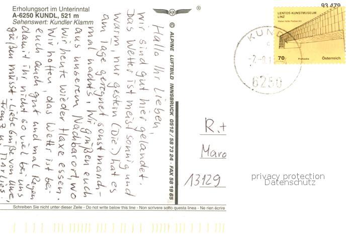 73185148 alte Postkarte Kundl Fliegeraufnahme Kundler Klamm postalisch gelaufen Erhaltung siehe scans [LiesaD40] KatCode: 11390335070514
