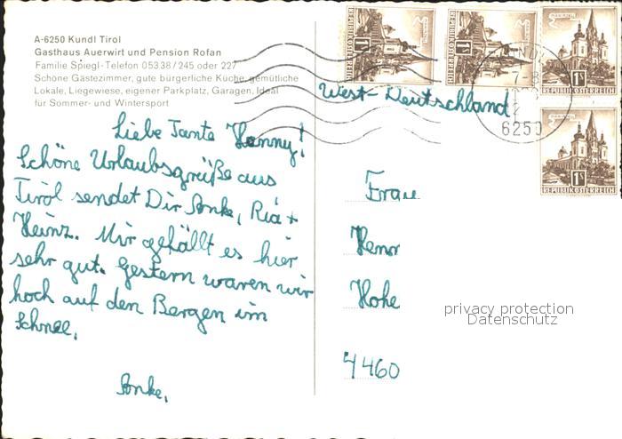 72244081 alte Postkarte Kundl Gasthaus Auerwirt postalisch gelaufen Erhaltung siehe scans KatCode: 11390335070514