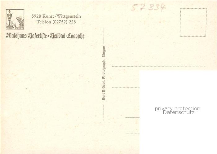 73865718 Kunst-Wittgenstein Bad Laasphe Waldhaus Haferkiste postalisch nicht gelaufen Erhaltung siehe scans [FriedD77] KatCode: 11110005970028