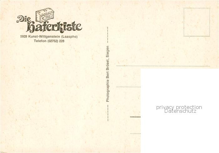73864076 Kunst-Wittgenstein Bad Laasphe Waldhaus Haferkiste postalisch nicht gelaufen Erhaltung siehe scans [WerneD78] KatCode: 11110005970028
