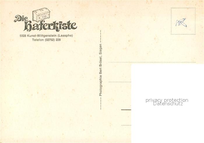 73635048 Kunst-Wittgenstein Waldhotel Die Haferkiste Restaurant postalisch nicht gelaufen Erhaltung siehe scans [FriedD77] KatCode: 11110005970028